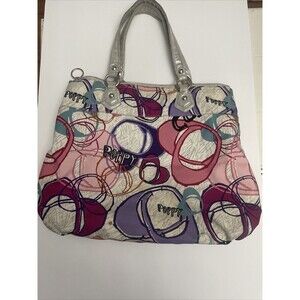 HAPPY COACH 17929 Poppy Multi Heart PINK PURPLE Glam 18x12 Tote Bag RARE