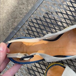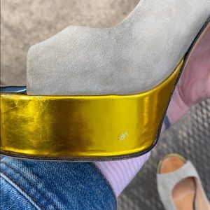 Giuseppe Zanotti heels size 37 1/2 (7.5). Beautiful shoes with suede material and gold platform. The heels are silver. A fun mix of Metallica. Some wear on the platform part shown in photos.
