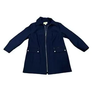 MICHAEL KORS WOMENS FULL ZIP OVERCOAT SIZE 0X NAVY BLUE WOOL
