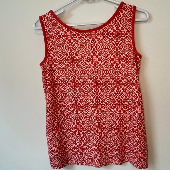 Lands' End Womens Casual Pullover Tank Top Sleeveless Coral White Print - Size S