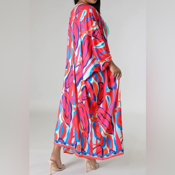 Experience comfort and style with our Waikiki Kimono Short Set. Featuring a multi-color print and stretchable fabric, this set is perfect for any occasion. Stay fashionable and comfortable all day long. Model is wearing a size small.