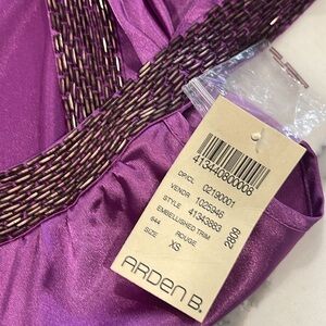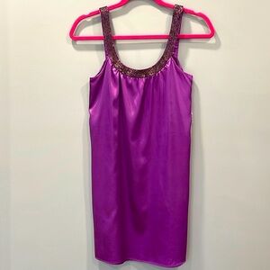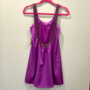 NWT Arden B Raspberry Satin Low Back Beaded Mini Dress -XS 15” pit to pit, 31” L polyester/spandex blend