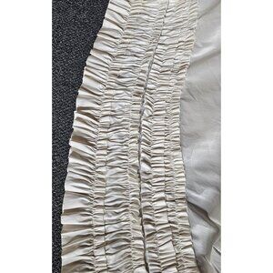 This stunning gown has so much that is interesting about it - and very little has to do with crystals or beads or lace the way many wedding gowns do. The rich ivory fabric has a look and feel like raw shantung silk. It's manipulated in several different ways, from the tiered ruffles on the bodice, to the under bustle on the LOOONG train, and ending with the ruched edging along the bottom. It seems like it should be a simple dress since the only ornamentation is the beaded crystal "belt" that is sewn at the waist, but it's anything but simple. The designer is La Sposa and it's brand new with the tags still on it.