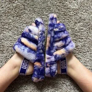 Pink and purple fluffy platform Ugg slippers. Worn maybe twice and in perfect condition.