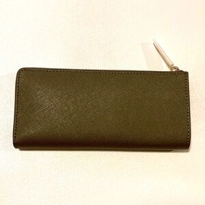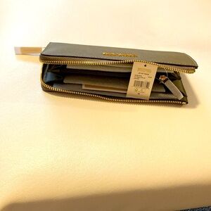 Gold tone zipper, multiple card slots, zipper compartment, bill slots