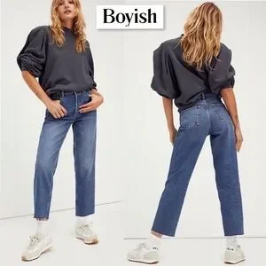 Boyish Tommy Jeans High Rise Straight Greed Wash Cotton Button Fly 26 Raw Hem