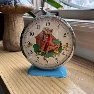Vintage Walt Disney Bayard France Mechanical Alarm Clock Pluto Blue