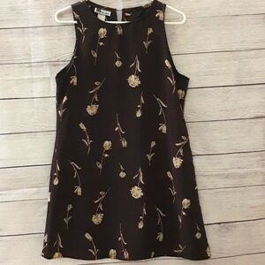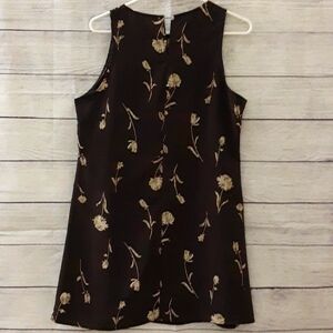 Floral Watercolor Print Tank Dress VTG 90s Brown Beige Size M