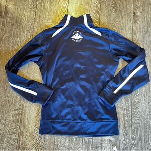 This NWT (New with Tags) long-sleeve, full-zip jacket is designed for athletic endeavors, crafted from 100% polyester for lightweight softness and comfort during training sessions.