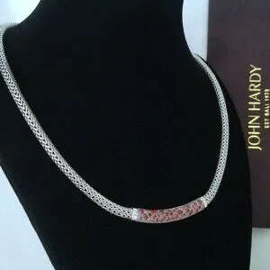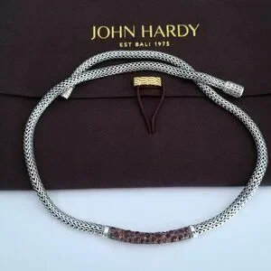 JOHN HARDY *RARE* Raspberry Lava Pink Tourmaline and Red Garnet Station Necklace - This stunning necklace by John Hardy is from the "Classic Lava Collection". It has an 18" length...with a 5mm Sterling Silver classic woven strand...and a stunning raspberry lava station with Pink Tourmaline and Red Garnet stones! Complete with original John Hardy packaging - Absolutely Stunning Necklace...Brand New!