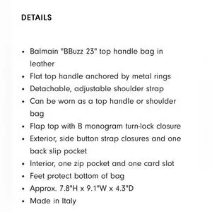 Balmain NWT BBuzz 23 Top-Handle Bag in Smooth Leather