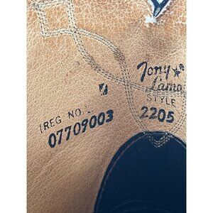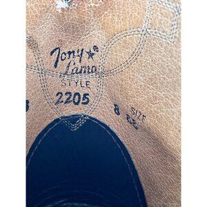 HEre for your consideration are a nice pair of men's Tony Lama Boots. The style is 2205 and the size is a men's 8 EE. These bottoms are in good condition with minimal wear. There is a little scuffs on the toe and some use and wear to the bottom. Over all in nice clean condition.