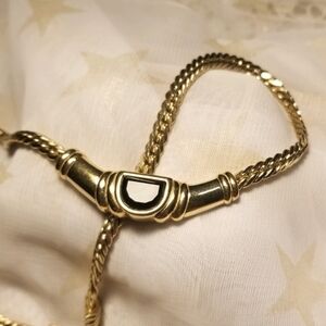 Runway Style Vintage Superb gold plated designer signed S.A.L. Swarovski America, Ltd which was the first name under which the famed Austrian Crystal Company began manufacturing their own jewelry. The SAL hallmark was used from 1977 to 1988. This beauty features a black faceted Austrian Crystal for its centerpiece. The length of the Necklace is 16.5". In excellent Vintage condition.