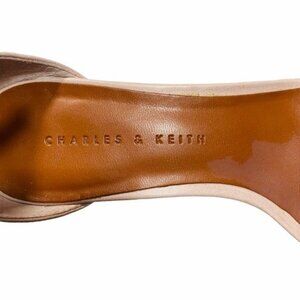 Charles & Keith Open Toe Pink Heels with Gold Heel
