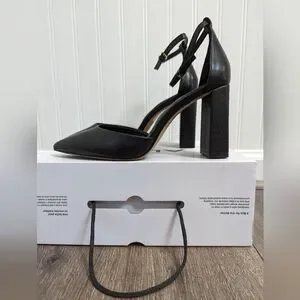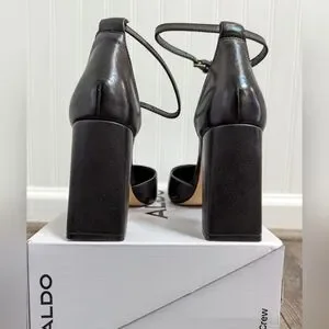 Aldo Size 8 Black Leather Block Heels Pumps Ankle Strap Padded Insole