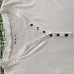 Relativity White Cotton V neck Henley Women's M (3/4 length sleeves)