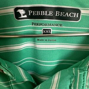 Pebble Beach Golf Polo Shirt Men’s XXL Green White Stripes Short Sleeve