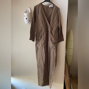 Apiece Apart Khaki Neutral V-Neck Jumpsuit size 2.
