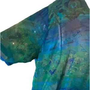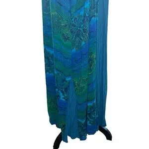 Love this Beautiful A-line, Maxi 2pc Dress! The Tank Dress is Crushed/Crinkled Fabric (Very Stretchy!) with An Amazing Chiffon Multicolor (Blue, Green, Black & Gold) Maxi Jacket with I believe SeaShell Buttons & Shoulder Pads.