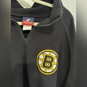Men’s Majestic Boston Bruins 3/4 Zip Up Fleece Jacket. Size Medium.