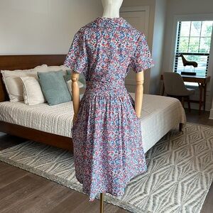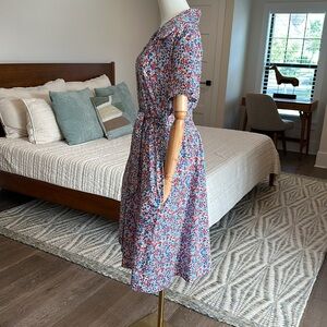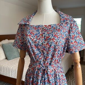 This dress is in EXCELLENT condition! It is a button down, with a sash, square neck, light weight, and it has pockets.
