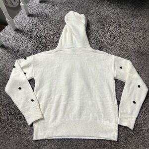 Hem & Thread Hooded Women’s Sweater Size Small White/Cream with Black Polka Dots