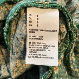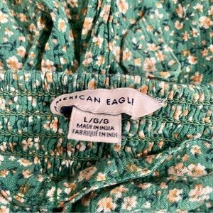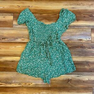 Women’s American Eagle Sz L Romper Green Floral Smocked Back w/ Tie Side Zip