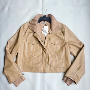 NWT$495 SIMKHAI Becka Boxy Zip-front Vegan Faux Leather Jacket Sz Large