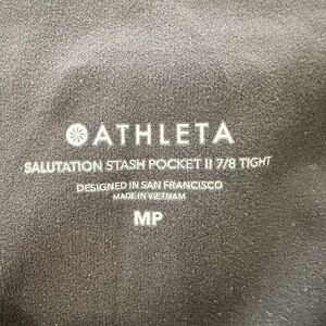 Athleta Salutation Stash Pocket ll 7/8 Tight-Size MP (Medium Petite)-Black. Good used condition. See picture for approximate inseam measurement.