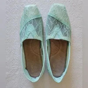 Tom's Espadrille Aqua Blue Floral Lace Slip On Women's Shoes Size 8.5