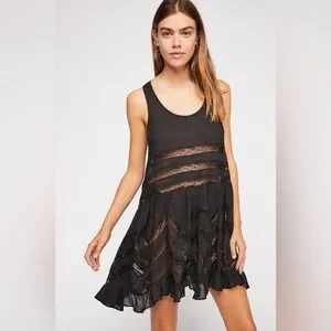 **SOLD** Free People Voile and Lace Trapeze Slip in all black - S