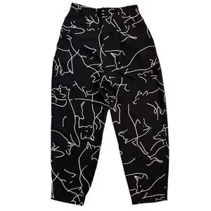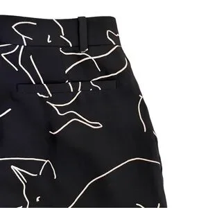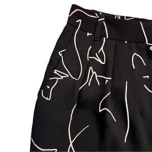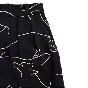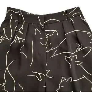 Babaton Pants Fox Print Sz 2 Black Tan Classic Baggy Fit Tapered Leg Aritzia
