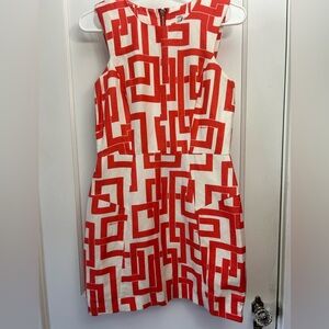 Milly of New York red & white geometric sleeveless linen/silk mini dress size 4