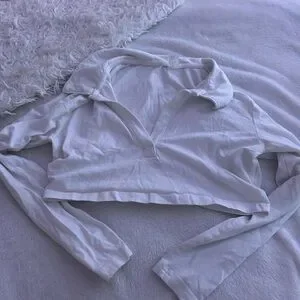 Cropped White V-Neck cut longsleeve.