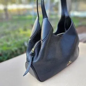 Gorgeous Michael Kors shoulder bag. It's in perfect condition. Clean inside and outside. Gently used. Made of smooth pebbled leather. 3 compartments: 2 with snap closures, 1 with zip closure. 2 compartments have very soft fabric lining, and 1 compartment logo jacquard lining. Handles drop 12". 1 zip pocket inside of zip compartment. Approx size 14" x 9" x 4". No MK hang tag. See all pictures for details