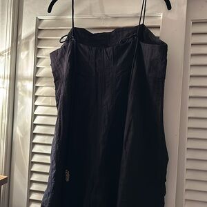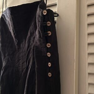 Used excellent condition - maxi wide leg jumpsuit w/wooden buttons down the side and adjustable straps with wooden grommets at the end