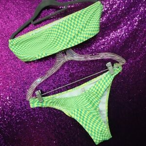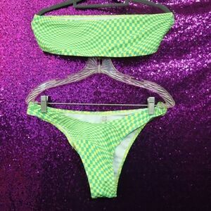 CHECKERBOARD BIKINI L Shein Strapless Cheeky Cute Summer Neon Dayglo Bright