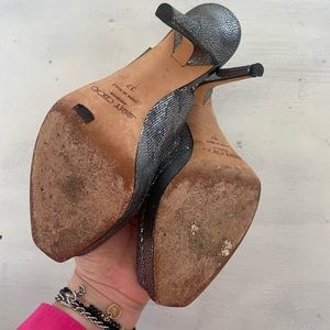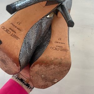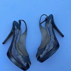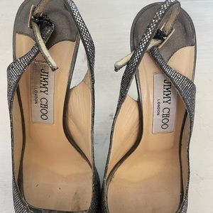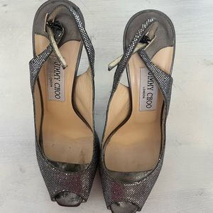 Jimmy Choo Silver Metallic Nova Glitter Slingback Pumps Heels
