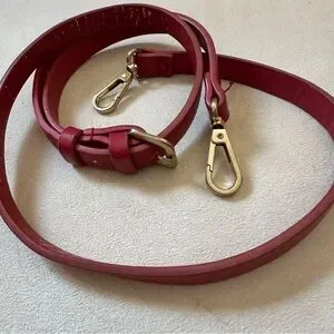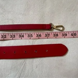 Size S. Measurements in photos. Faux leather material. Lipstick red color with gold metal hardware. Magnetic flap closure and zipper closure. 2 straps to wear as a crossbody purse or as a fanny pack. Peeling as shown and cracks as shown on strap. The magnetic closure part is a little loose but still functional. This bag was dubbed as "bloggers fave." Well-loved with plenty life left.