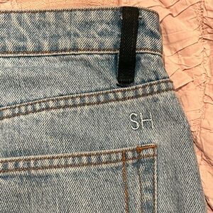 Still here long denim skirt with painted belt loops in a size 28!