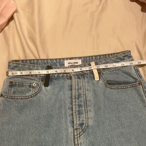 @karetiazhang added a pic of measurements of the waistband !! Let me know if that helps. It's the last pic -- laying flat looking like 15.5 inches or so with stretch in the hips. I wore high on my waist bc I'm a bit bigger but if you wore on your hips I feel like it would fit. Let me know if you need any other measurements !