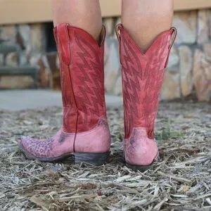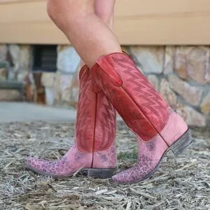 I'll take the pink cowgirl boots please! Y'all - we are LOVING this darling design by Old Gringo. excellent quality! The boot shaft is a stunning shade of pink accented with fun stitch patterns. The vamp, clad in brushed pink leopard print leather! Pretty in pink for the win!