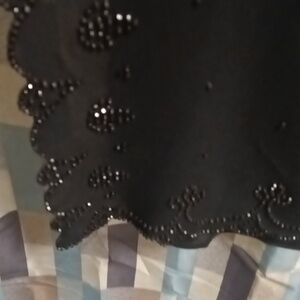 J. R. NITES BY CALIENDO 100% polyester shell and 100% acetate lining beautiful black deep cowl neckline short sleeve sheer beaded scalloped blouse and maxi skirt Size 6