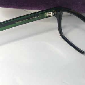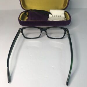 This square Gucci optical comes in a shiny black with transparent green frame.
