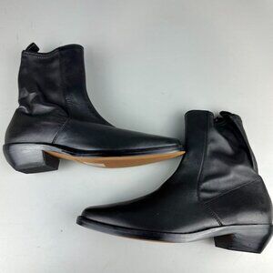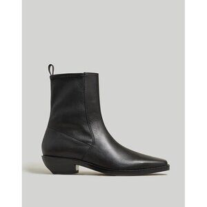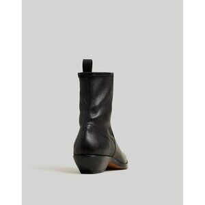 Features: leather, slip on, ankle, mid ankle, stylish, Madewell, winter, fall, fall fashion, trendy, booties, boots, low heel, timeless, western, square toe, everyday, stacked heel
