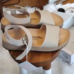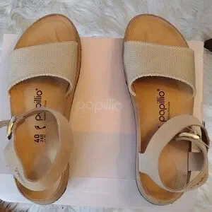 Birkenstock Sandals- Size 40 (9-9.5) Cream with Gold Buckle- Papillo Glenda NWT