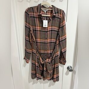 Walter Baker Tanya Shirtdress (Knotted gingham woven mini shirt dress)
