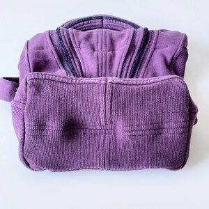 These exclusive rework totes from our creative in-house studio are made out of scuba hoodies with broken zippers. We found a wonderful way to keep these beauties out of landfill and give them new life. They have been carefully crafted by hand with top handles, a crossbody strap and flat base. Plus, they’re machine washable!