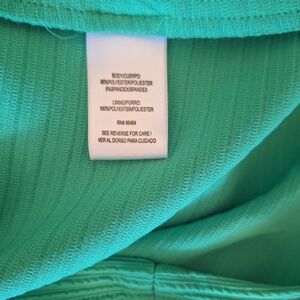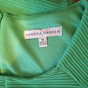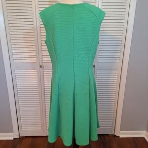 beautiful and stretchy for and flare style dress from Sandra Darren. ribbed textured with cap sleeves and zipper back. kelley green. size is 16. armpit to Armpit is 19 1/2" waist is 17", shoulder to hem is 39". excellent condition