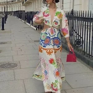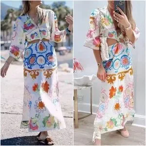 07 Boho Floral Tropical Print Cut out Short Sleeve Dress
